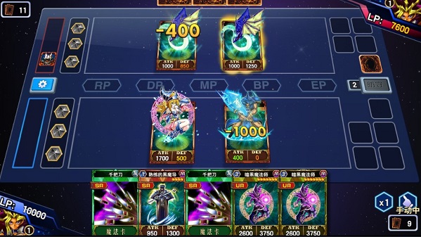 可以看到图例中,玩家拥有10000点血量,对手则拥有8000点血量。当一方的血量降低直0以下时,判定该方失败,战斗宣告结束