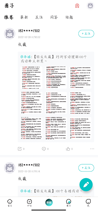 4、圈子界面可以找到很多志同道合的人,也可以看到大家共享的资料