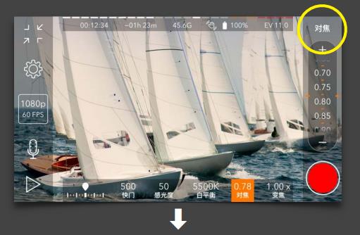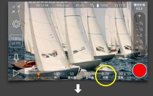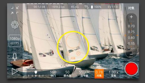 d、手动调节对焦后,对焦点将在屏幕显示,提示对焦已锁定。点击解锁图标以解除对焦锁定并切换到自动对焦模式。