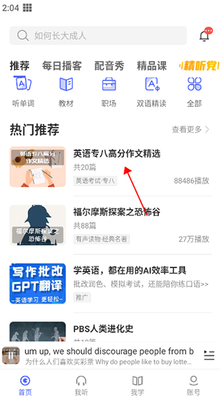 播放中遇到生词,系统自动弹出百科卡片,给出中英文释义与例句,边听边记,词汇量在不知不觉中上涨。