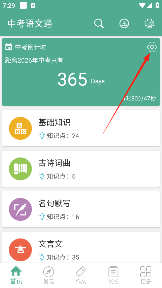 1、打开中考语文通App,点击设置