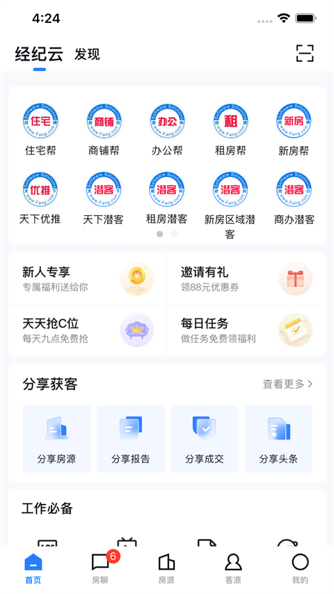 为经纪人提供住宅、别墅、商业等全业态房源发布后台,并配备区域市场走势、竞品监控、流量来源等大数据报表,用数据指导定价与推广策略。