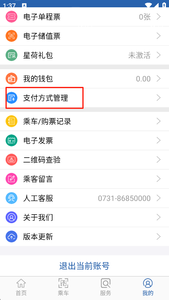 4、选择【长沙地铁支付方式管理】