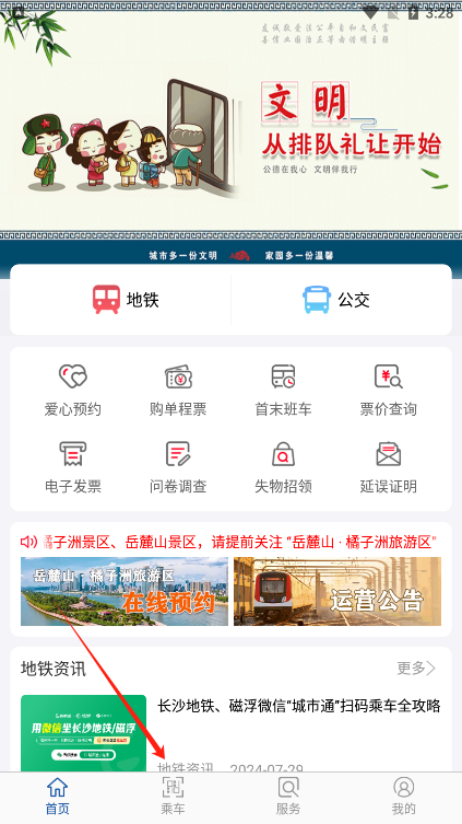 2、来到主页我们点击乘车