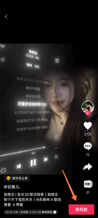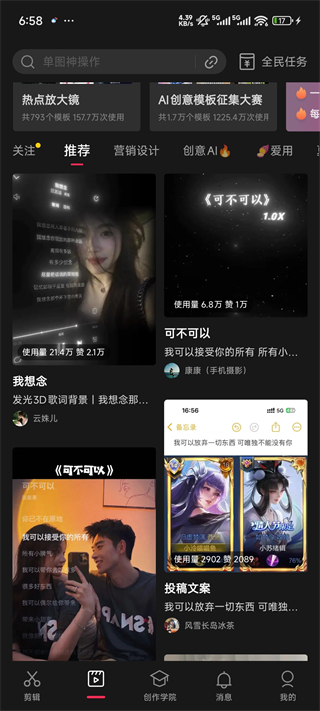 4、如果你不知道剪什么也可以点击剪同款这里有各种各样的模版供你使用
