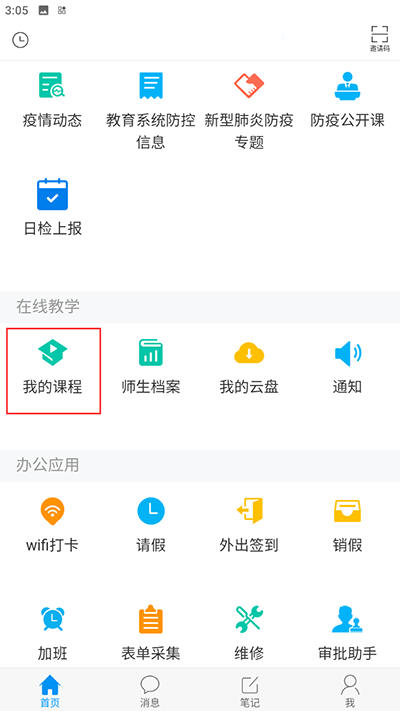 1、点击我的课程。