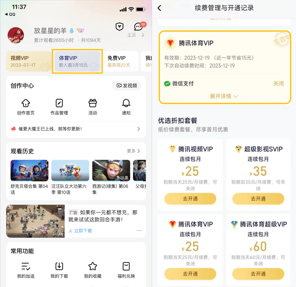 自动续费功能可在会员业务即将到期前,以优惠价格续费并自动延长腾讯体育VIP或腾讯体育超级VIP服务。不同的开通方式对应的关闭续费方式也不同,以下为各支付方式关闭续费方法: