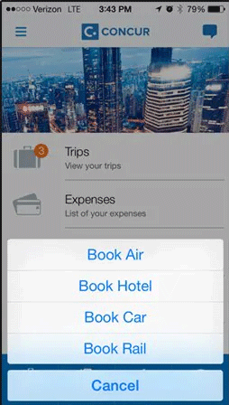 Concur Travel 提供从智慧型手机、平板电脑或PC上搜寻航班、饭店、 租车 和铁路选项的多种方法。