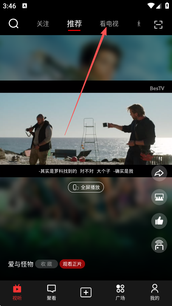 1、打开软件,点击【看电视】
