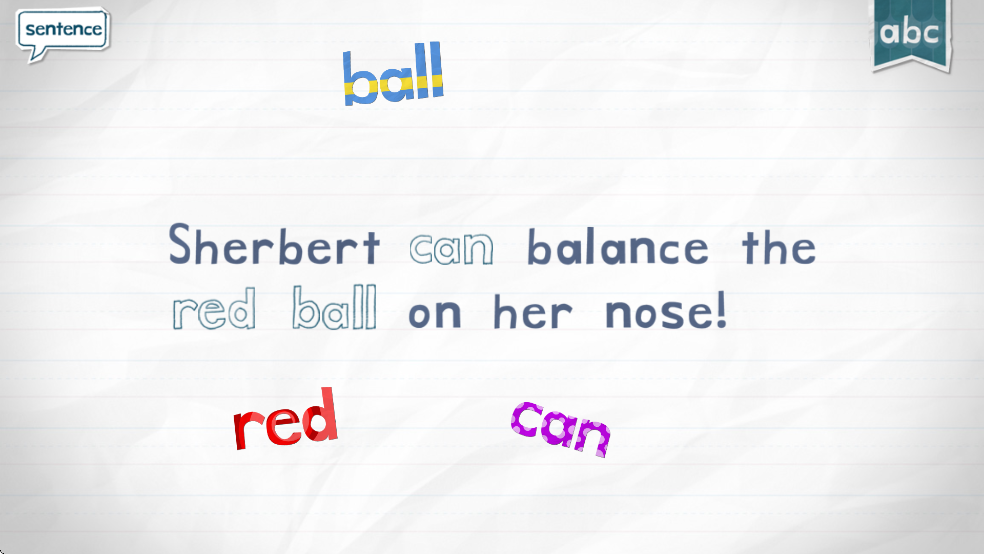3、把字母摆好之后,就会出现长句,你需要引导你孩子跟你一起用填空的形式来完成长句。