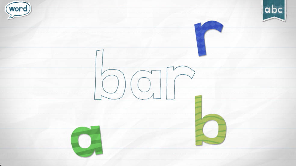 2、点击之后,你需要带着孩子把每个字母填进相应的空缺中去,有意思的是,每当捏起一个字母的时候,字母就会发出萌萌的声音,通过这种形式可以让孩子们记忆深刻。