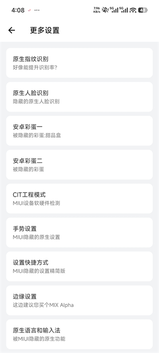 4、适用于MIUI等定制系统,可显示并开启被隐藏的原生安卓功能。