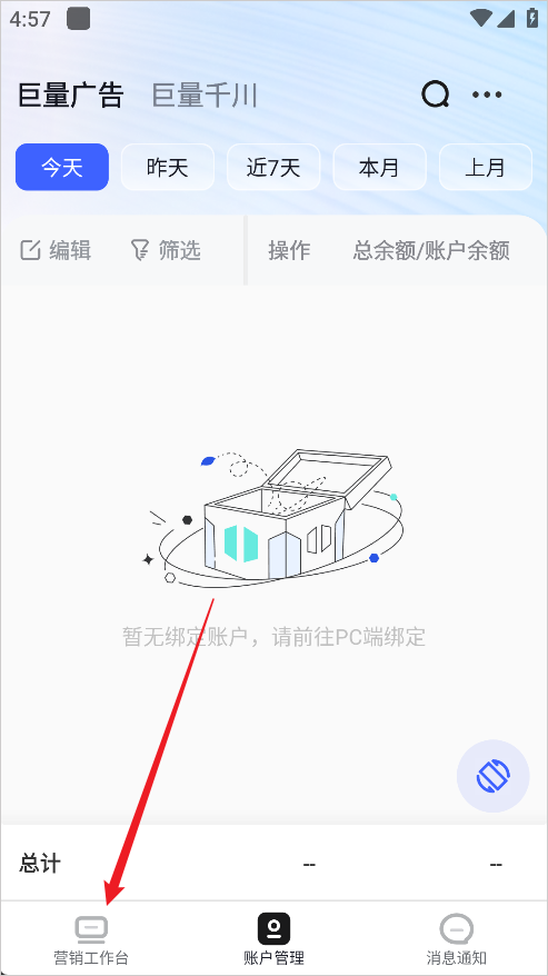 1、首先点击巨量引擎官方版下方导航栏的【营销工作台】