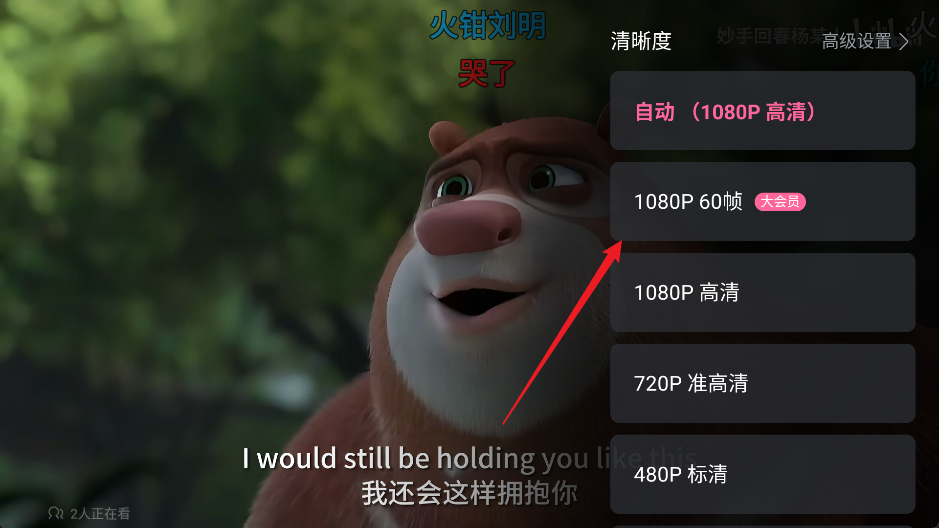2、找到播放界面底部的画质选项,点击进入画质设置。