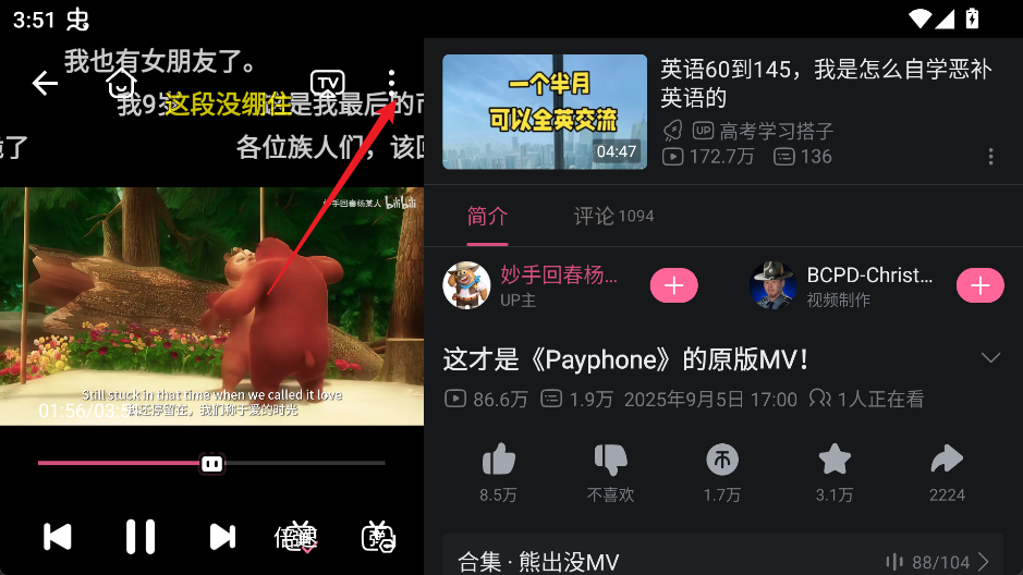 1、进入哔哩哔哩HD后,打开你想观看并缓存的那个视频。