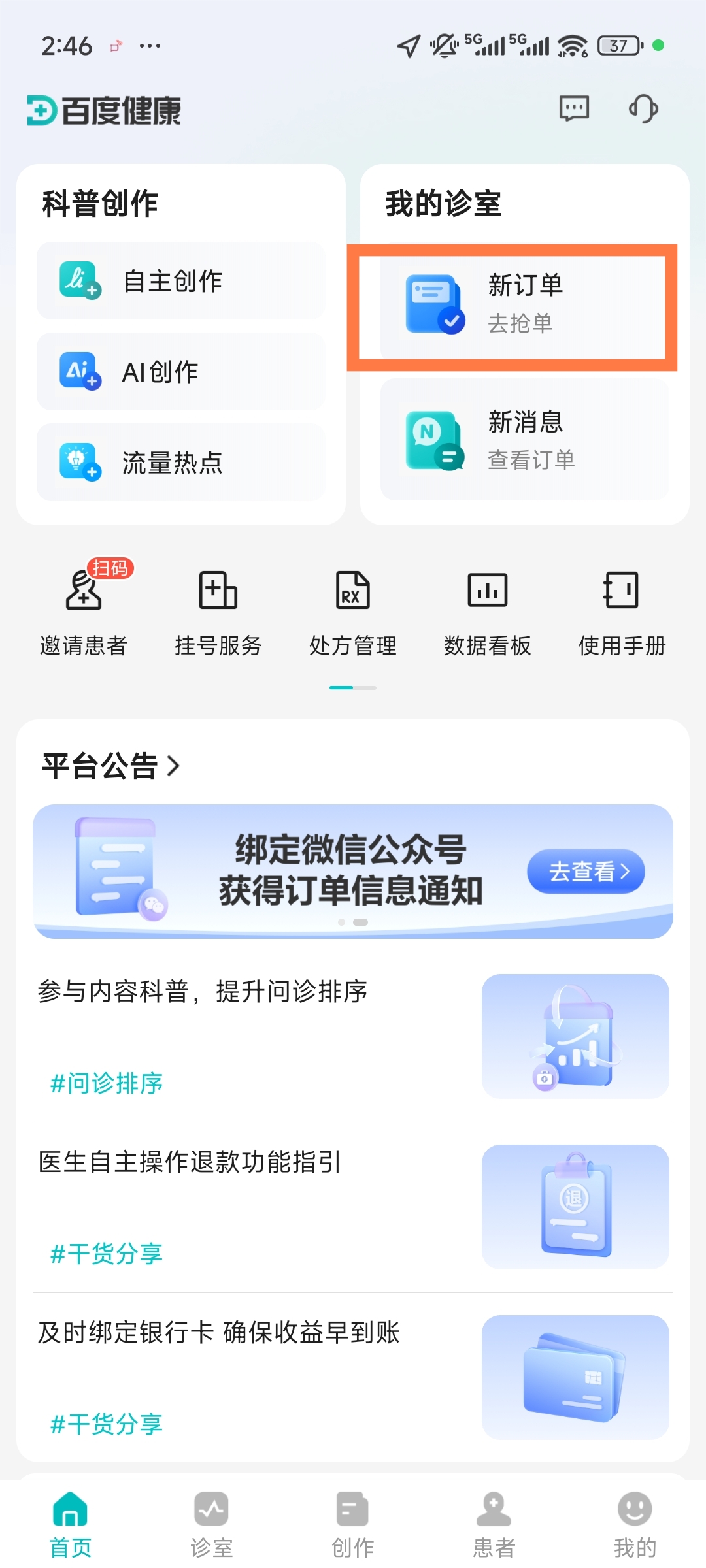 全新界面与布局,为医生打造专属线上执业空间,开诊、随访、宣教一站式完成,体验流畅专业。