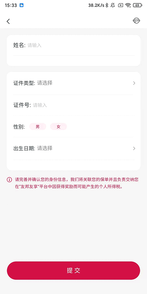 3、完善并确认您的身份信息,完成后点击【提交】即可。