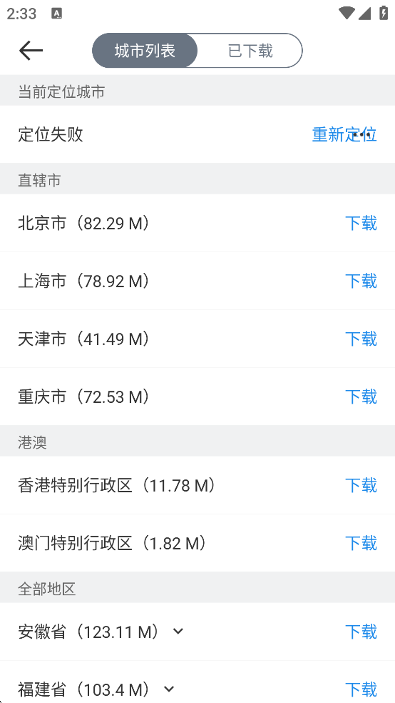 4、选择城市地图下载即可