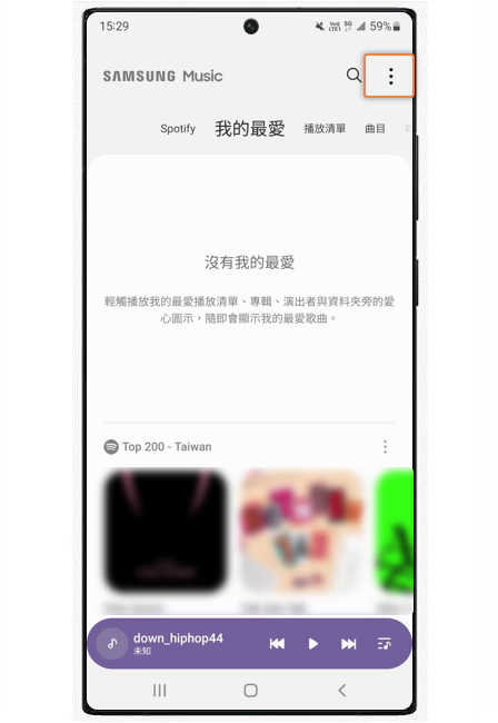 1. 开启三星音乐后,点击右上角更多(...)。