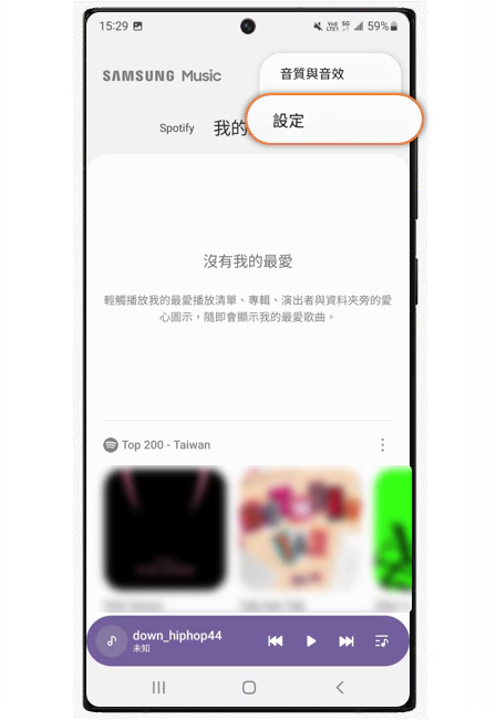 1. 开启三星音乐(Samsung Music)后,点击右上角更多