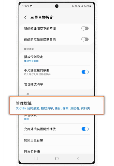 三星音乐提供淡入淡出功能,避免歌曲之间太过于安静,让您可以完全融入音乐的世界