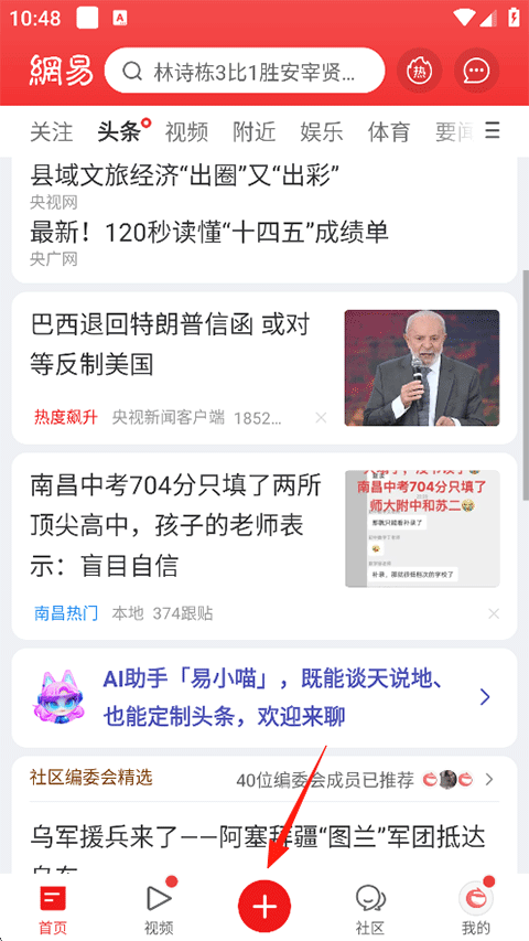 1、打开网易新闻APP,点击屏幕正下方的+图标;