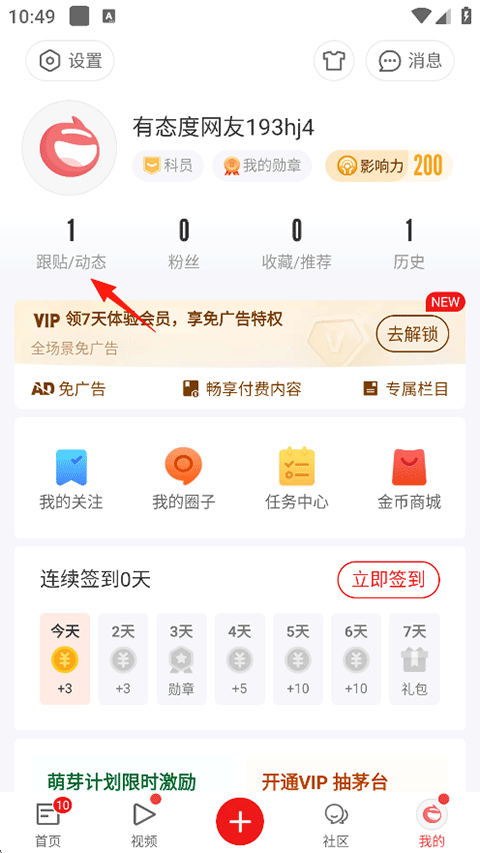 3、已发布的内容可以点击我的-跟帖/动态;