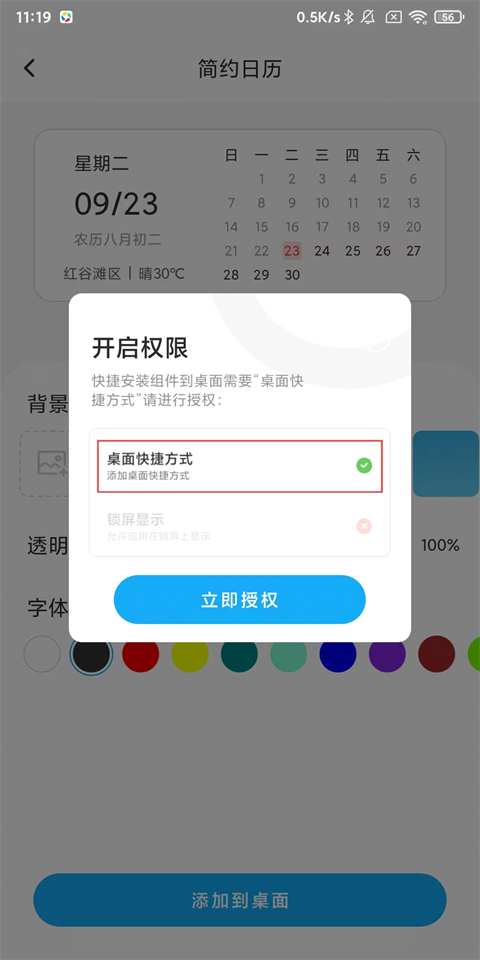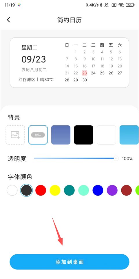 4、还可以设置背景、字体颜色,完成后点击【添加到桌面】;