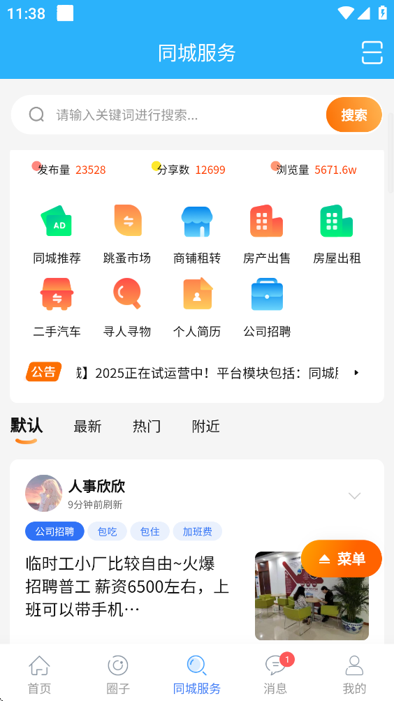 园洲社区最新版这款实用的本地生活服务软件,是专门为惠州市国洲镇命设计的,为用户提供了优质周全的本地生活服务,在这里你可以轻松高新的找工作、找反诈、聊八卦、交友,甚至还可以购买家居用品等,同时你也可以在这里转卖你的闲置用品,每一笔交易都是安全诚信的,有保障的。此外,通过使用园洲社区最新版软件,你还可浏览到本地最新的资讯内容,实时掌握当下最新最热门的新闻内容,如果你对这款软件感兴趣的话,不妨来下载试试吧。