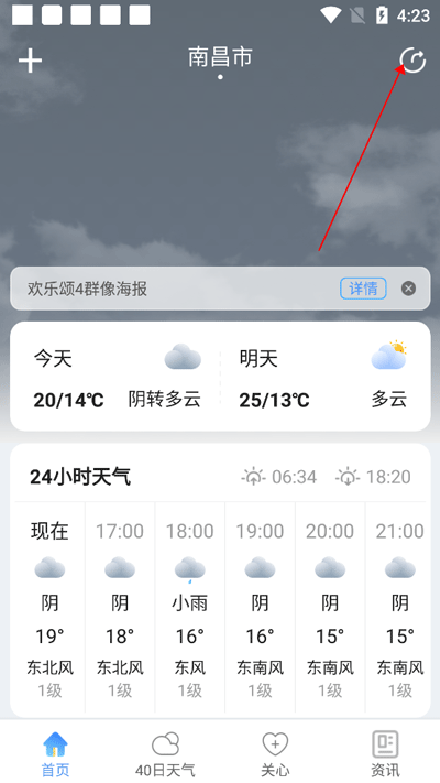 1. 点击首页的小喇叭图标,即可收听所在地区的详细天气播报,方便又实用。