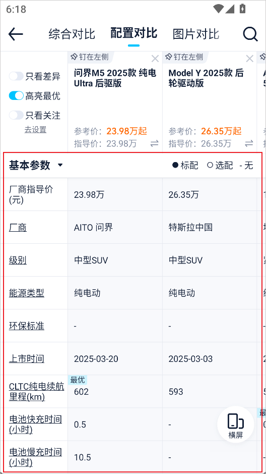 7、页面将展示两款车在价格、配置、动力、油耗、空间等多个维度的详细对比,帮你快速看清差异。