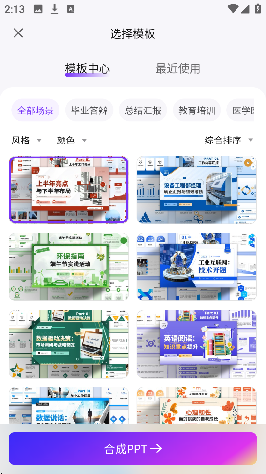 每一个类型的模版还可以根据风格和颜色进行更加细致的筛选,让你快速找到心仪PPT模版!