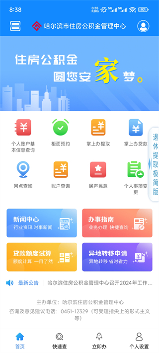 哈尔滨公积金App下载最新版是一款专门为哈尔滨住房公积金管理推出的一款软件,在这里可以为用户带来便捷的住房公积金的服务,让你可以在这里在线查询个人账号,缴费情况,贷款信息以及业务的在线办理,同时还能够让你在这里第一时间掌握最新的政策资源,并且通过办事指南让你更快捷的办理自己的业务,拥有它让你从此的业务办理更快捷高效,感兴趣的话,不妨来下载哈尔滨公积金App下载最新版试试吧。