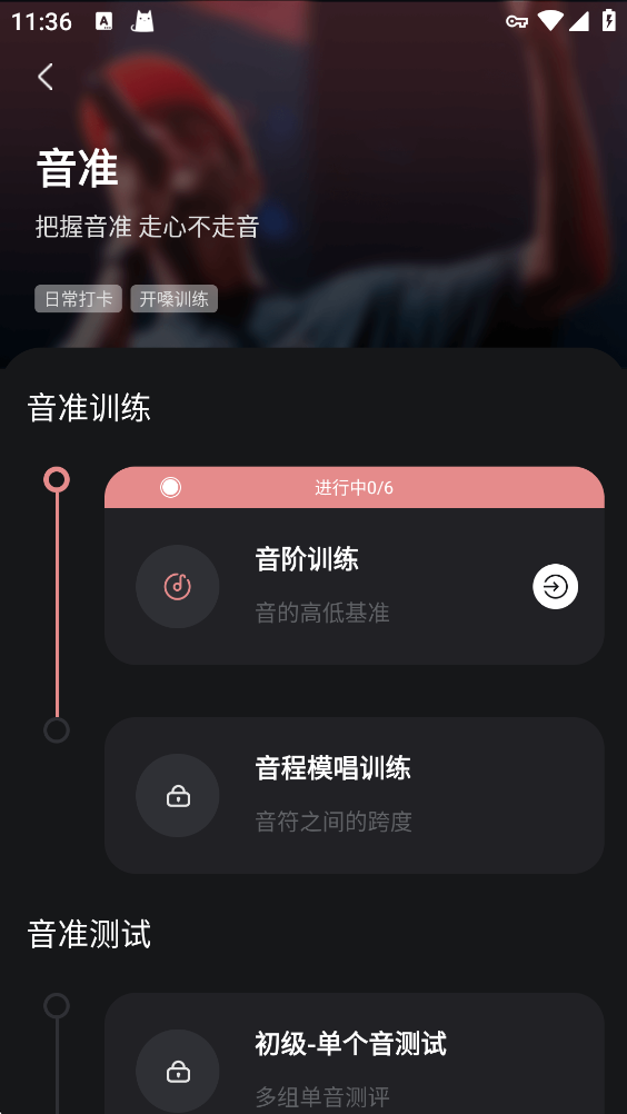 开嗓练声:每日打卡热嗓,调整开口发声状态,让您的歌声更加动听。节拍音准训练:交互式对话,模拟一对一在线教学,助你提升