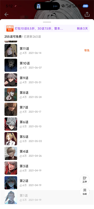 3、在漫画目录,你可以查看每一章节的更新时间、点赞数,提前了解剧情进展。点击单话直接进入阅读,支持正序和倒序切换,灵活调整阅读顺序。