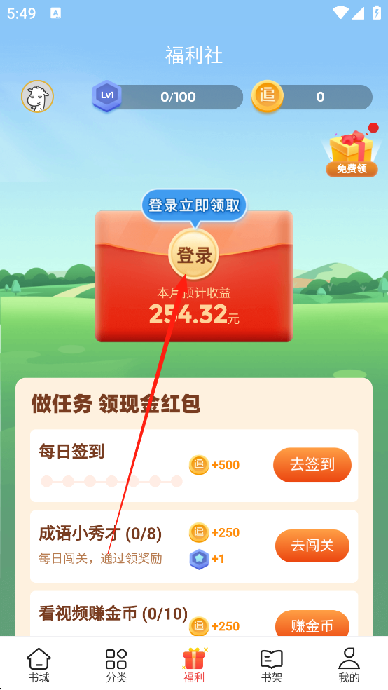 2、登录之后,完成软件内的各种任务可以获取金币奖励