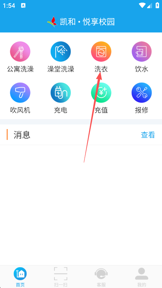 2、选择连接设备的模式,“搜索洗衣”或“扫码洗衣”或“预约查询”