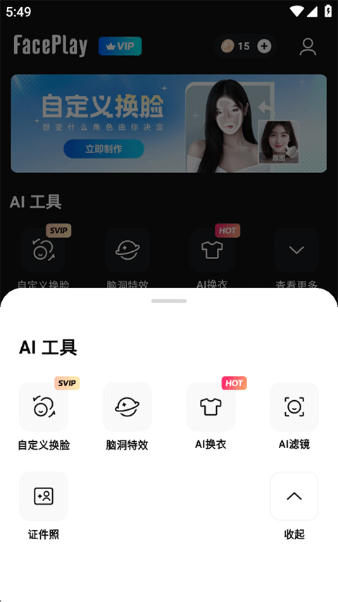 选中特效一键套用,自动完成面部追踪与替换,无需繁琐调节,新手也能秒速完成变脸。