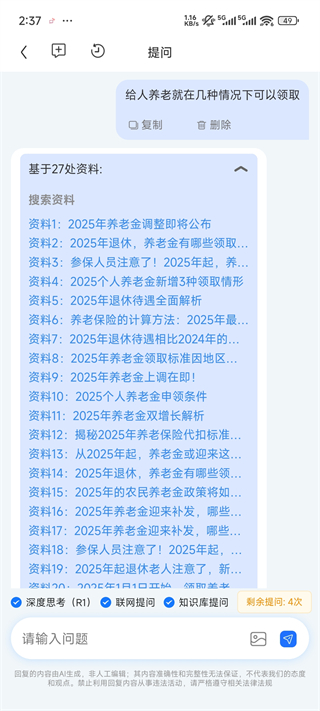 4. 检索提问功能支持联网提问和个人知识库提问,结合AI技术提供准确且个性化的回答,满足不同用户的需求。