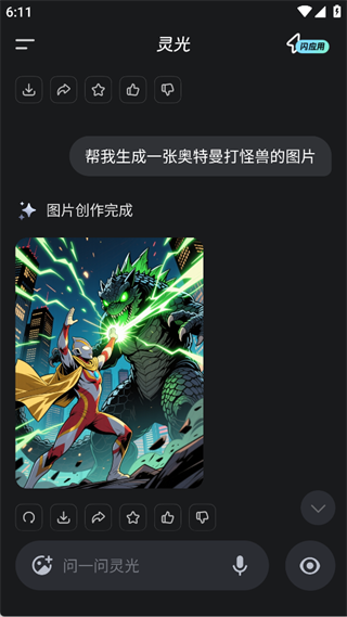 灵光智能版是一款新兴推出的一款智能AI助手,有着十分强大的功能,让你可以在这里畅享不错的信息处理体验,在这里让你可以快捷的对语言、图像、语音等数据进行理解,并智能生成你需要想要的输出效果,而且这里可以让你实现多样的创作方式,让你可以在这里更好的进行识图功能以及创作,让你可以在这里获得更有创意和效率的创作,感兴趣的话,不妨来下载灵光智能版试试吧。