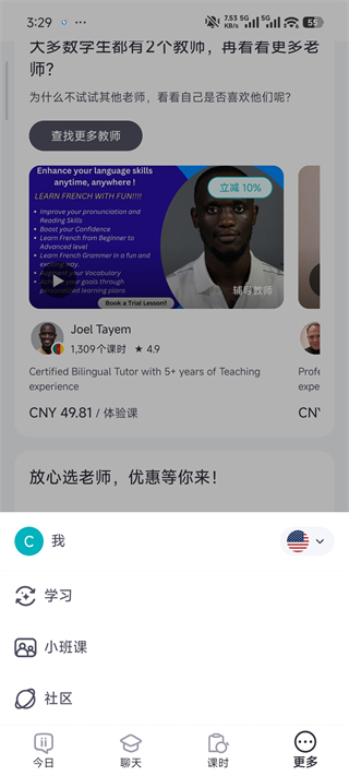采用“上一节课付一节课”的模式,每课时低至5美元,无需长期捆绑消费。学员可自由跟随一位或多位不同专长的老师学习,灵活按需安排,轻松提升外语水平。