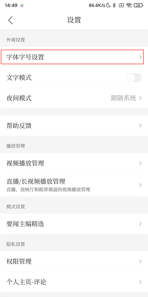 3、进入设置字体大小即可。