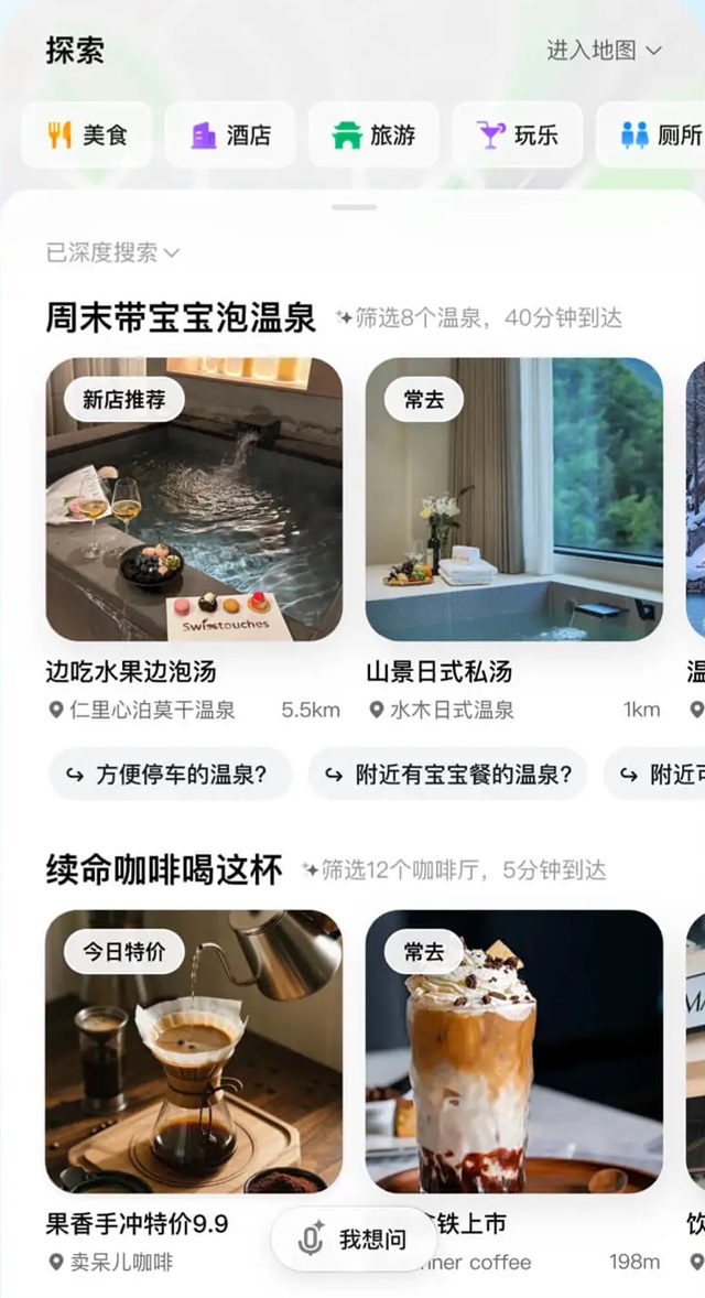 3. 生活服务整合:涵盖餐饮、住宿、景点、娱乐等,精彩“附近”板块带你发现身边的好去处。