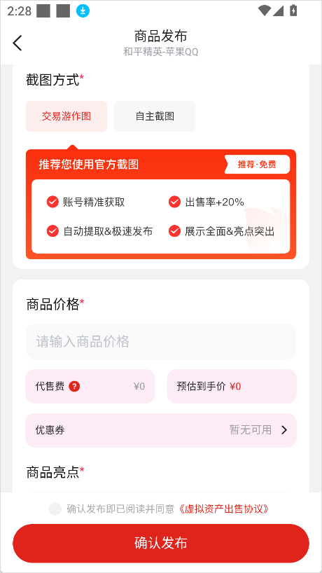 5、填写并确认账号信息,最后点击【发布】即可完成出售。