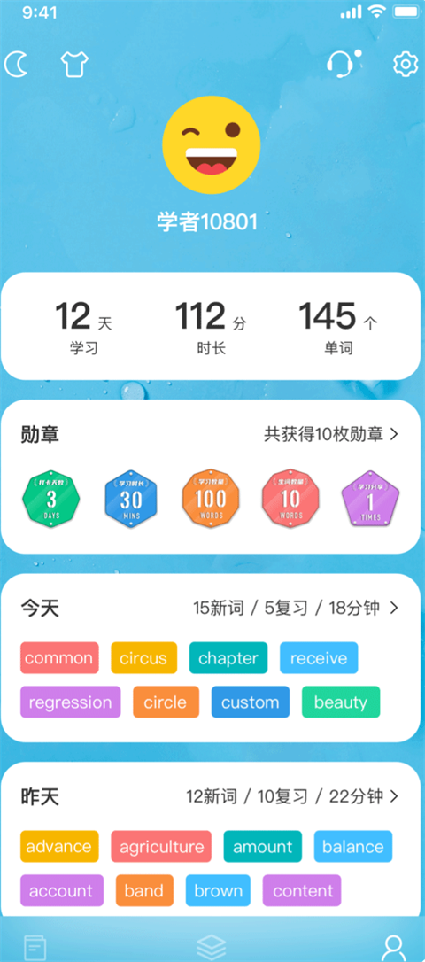 内置覆盖小初高、四六级、雅思托福等阶段的海量词库,支持按主题或考试类型筛选;配合智能复习算法,自动推送易忘单词,巩固记忆效果。