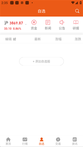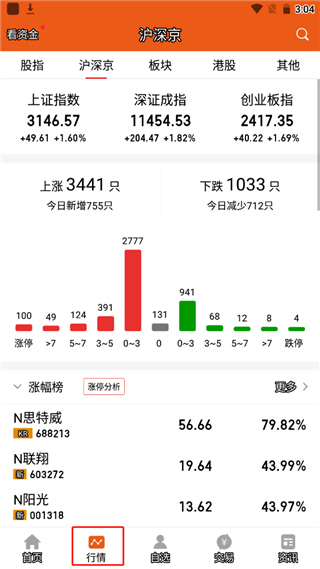 2、点击行情,里面提供了沪股深股港股等所有行情,用户可以一手掌握;