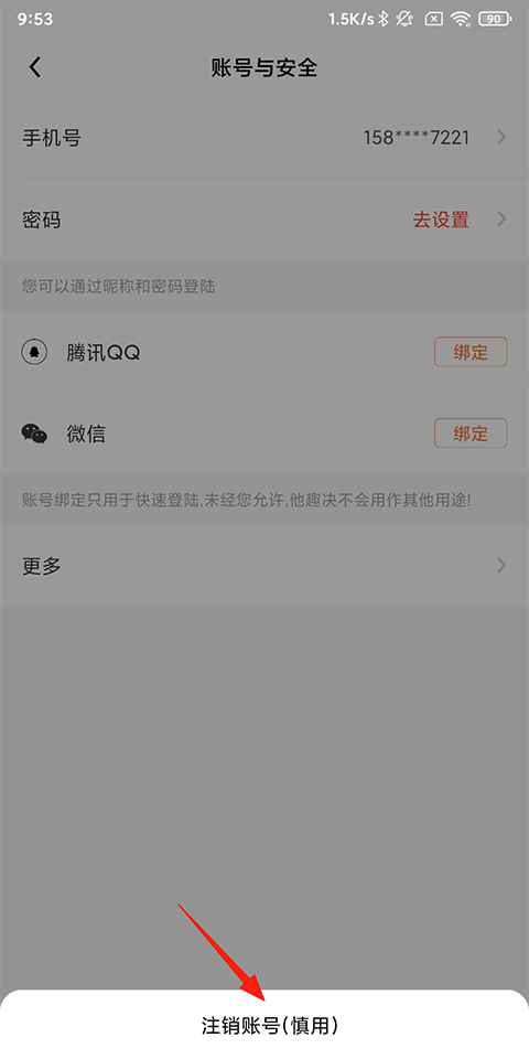 4、点击下方注销账号;