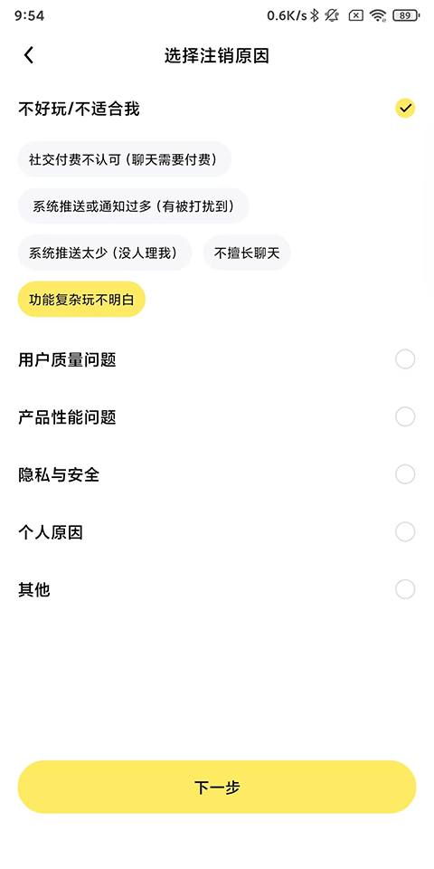 7、选择注销原因继续下一步;