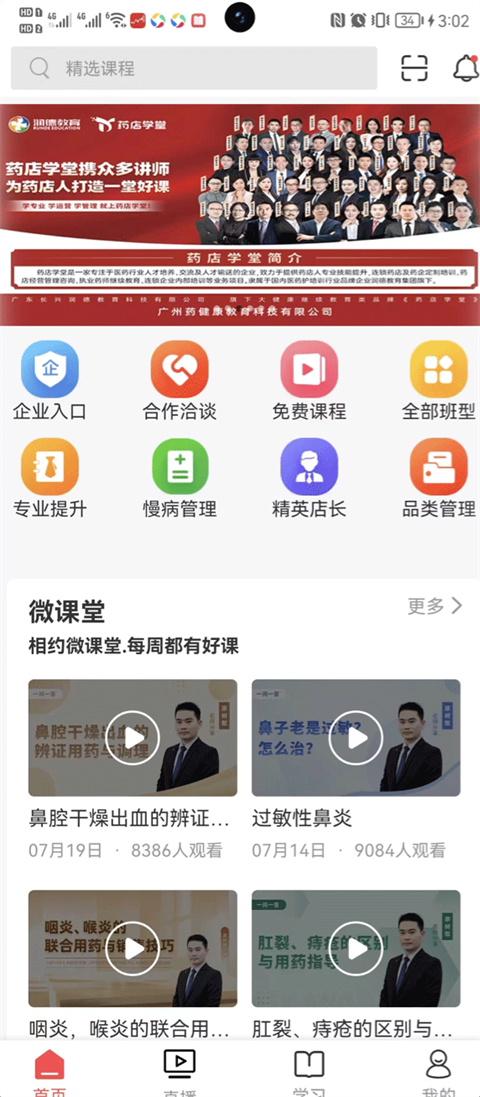 药店学堂最新版是目前超级热门又好用的医药培训在线课堂软件,是专门为医药行业人才而打造的培养学习软件,这里的课程丰富且专业,覆盖了不同领域的医药专业知识,提供了高清的视频教学以及配套的习题练习,让你可以在这里进行线上实操,更有名师团队为你提供全方位的找到,让你可以高效的掌握十足,快速提升个人的专业技能,而且还有新的教学内容不断更新,带给你更棒的医药学习体验,感兴趣的话,就来下载药店学堂最新版试试吧。