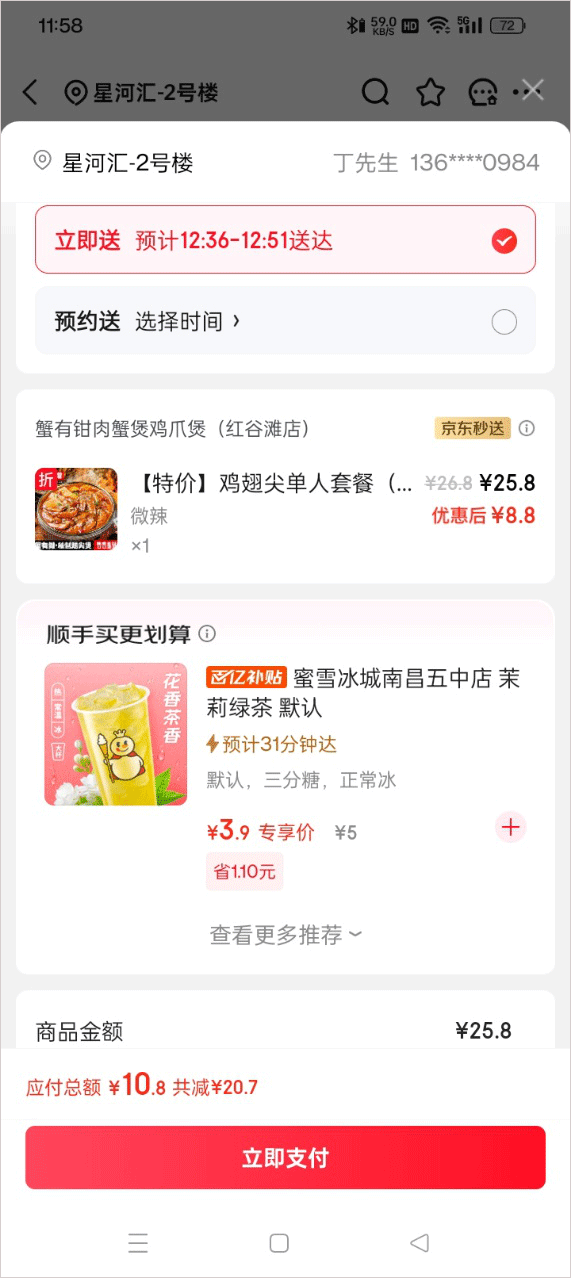 京东外卖把餐饮和零售装进同一个入口,生鲜、药品、数码、鲜花等同仓上架,系统匹配最近门店,最快 9 分钟送到手。